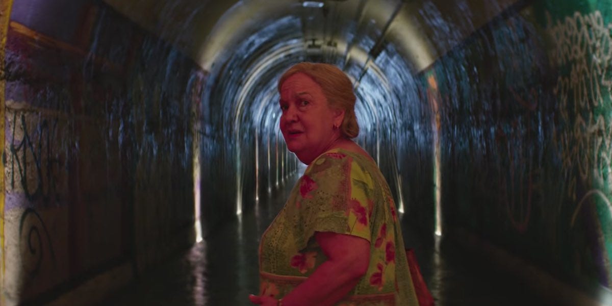 During Lin-Manuel Miranda’s musical film In The Heights, there is a sequence in which Abuela Claudia sings Paciencia Y Fe as her character passes on. This entire sequence exists outside the “real” events happening in the film. We know this because other characters are experiencing a citywide blackout whilst Abuela Claudia is seen in bed that night before the scene cuts to her taking a subway journey during the day. The brief ruse here is that it lets the viewer think she is having a flashback to just any other subway trip as she sings about longing for her homeland of Havana, when this scene is actually a cosmopolitan rendition of the metaphysical transit journey to the afterlife, where a subway train replaces the boat. In the final scene of this sequence, she walks into a light at the end of a long, graffitied hallway, signalling her death.